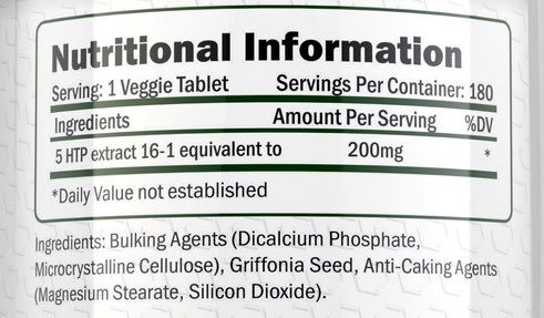 Nu U nutrition shows us that Griffonia simplicifolia is the source of the 5-HTP on the bottle. Some people claim that supplementing with unrefined shrub/ seed in a tablet form is superior to supplementing with refined 5-HTP, but there is insufficient evidence to bolster this. To ensure complete clarity, Nu U Nutrition gives us the breakdown of the amount of 5-HTP per capsule (200mg per tablet) which is great.